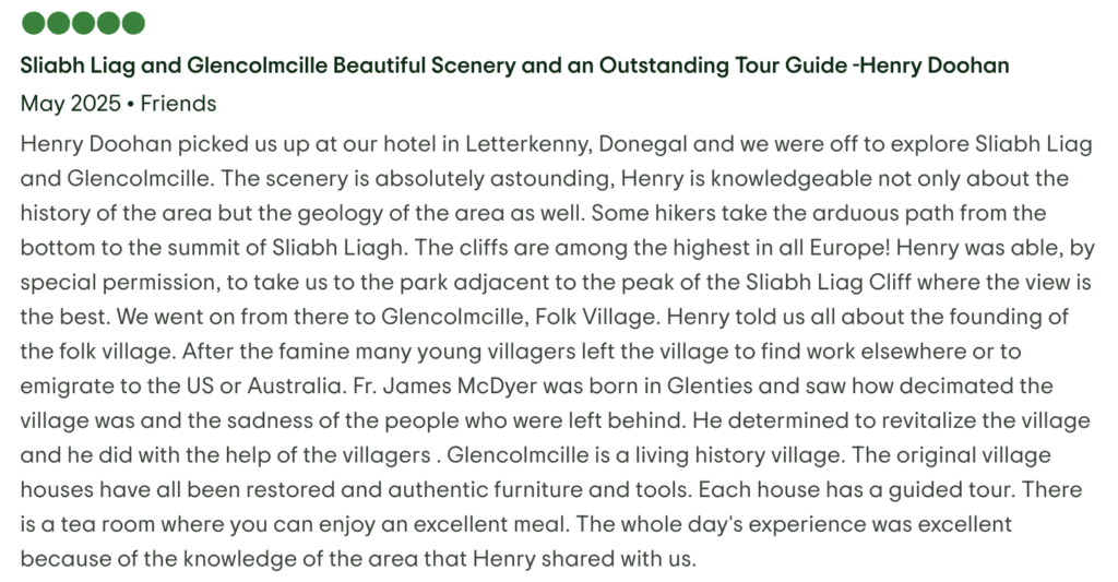On my Sliabh Liag and Glencolmcille tour, I often say that if you want the Ireland you have seen in brochures, you will love the Cliffs of Moher. If you want the Ireland that feels authentic, Sliabh Liag is hard to surpass.